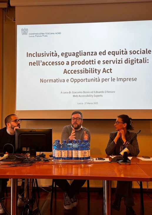 A queste ed altre domande abbiamo provato a rispondere con il nostro intervento all'incontro organizzato da Confindustria Toscana Nord rivolgendoci alle imprese del territorio. È stata un'occasione utile per fare chiarezza su normative, scandenze e buone pratiche, con uno sguardo concreto agli strumenti e al lavoro quotidiano che l'accessibilità comporta.